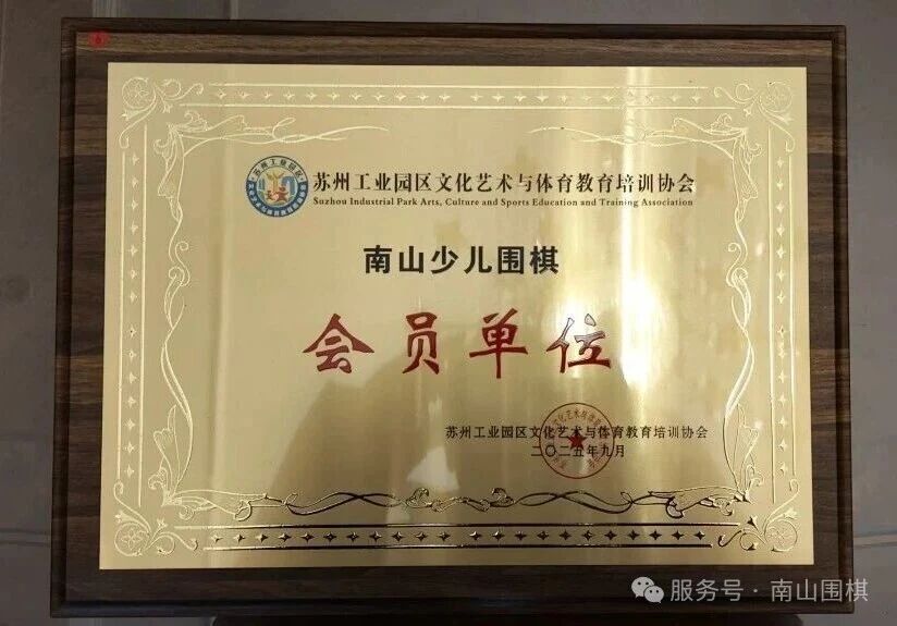 2026年1月22日,苏州工业园区文化艺术与体育教育培训协会成立,南山围棋俱乐部与新东方学校、苏州奥体中心、苏州文化艺术中心、市民中心等24家单位共同入选创始会员单位,也是唯一获此殊荣的围棋教培行业单位。南山围棋始终坚持高标准、高要求办学,在名列教培白名单机构的基础上,进一步提升,努力将自身打造成为行业龙头。